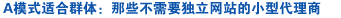 | 假如您不会有很多的业务量,又不需要有独立的网站, 但您希望能在产品上有个代理的优费价格, 那么北京网站建设的A模式适合您。 |