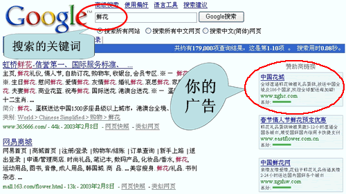 1、覆盖面广,全球最大搜索引擎Google搜索结果页右侧上方及Google各联盟